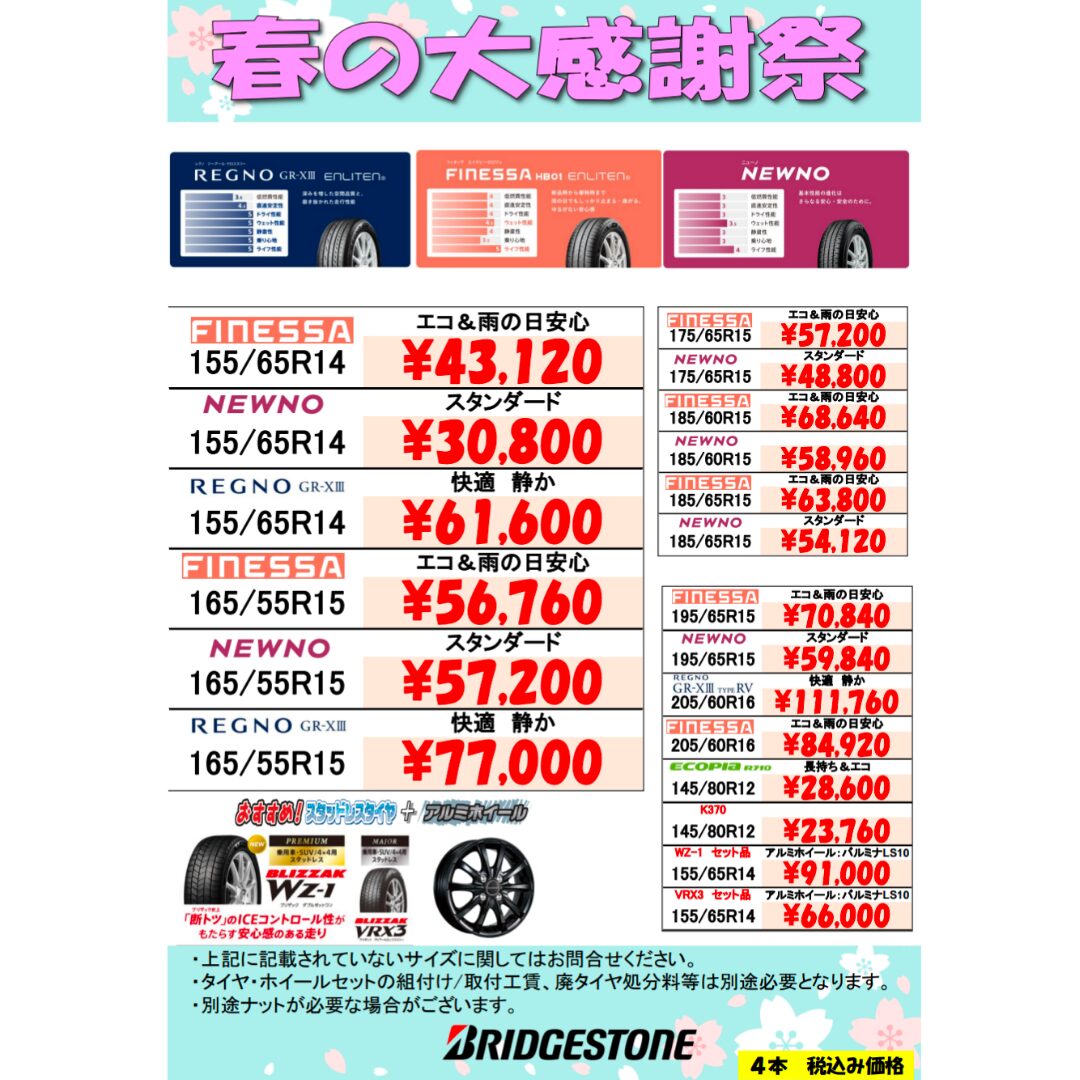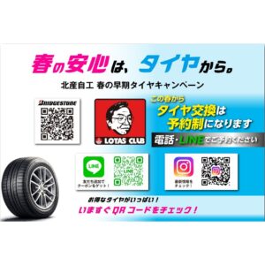 🛞春の早期タイヤキャンペーンのお知らせ🛞 2026年03月19日 〜春の早期タイヤキャンペーンのお知らせ〜 明日から春の早期タイヤキャンペーン開催します💨 4月よりタイヤ交換が予約制となります。 お電話、LINE等でご予約をお願い致します。 毎度ご好評のポップコーン🍿もプレゼント❣ ご来店お待ちしております。